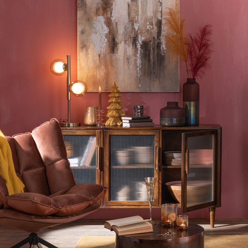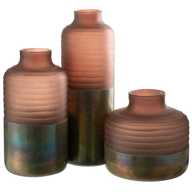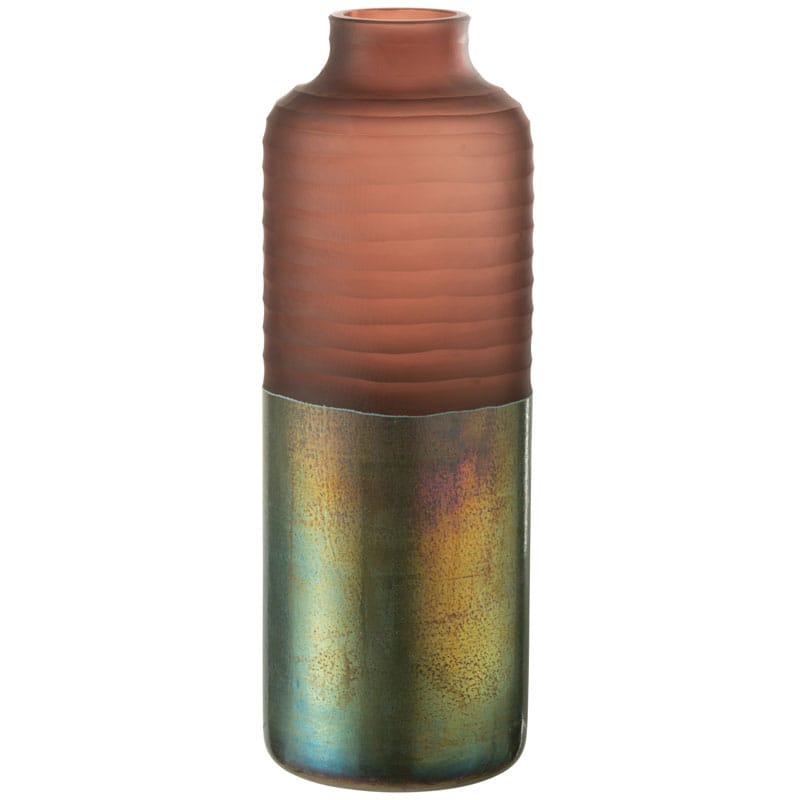 Prachtige en stijlvolle vaas van roze geribbeld matglas met een glossy onderzijde in warm brons met een kleurige gloed. Een bijzonder pareltje voor op een mooi plekje in je huis. Heel mooi om te combineren met andere vazen uit dezelfde lijn. Afmetingen: 19 x 19 x 42 cm Kleur: Roze & Brons Aantal: 1 stuk…