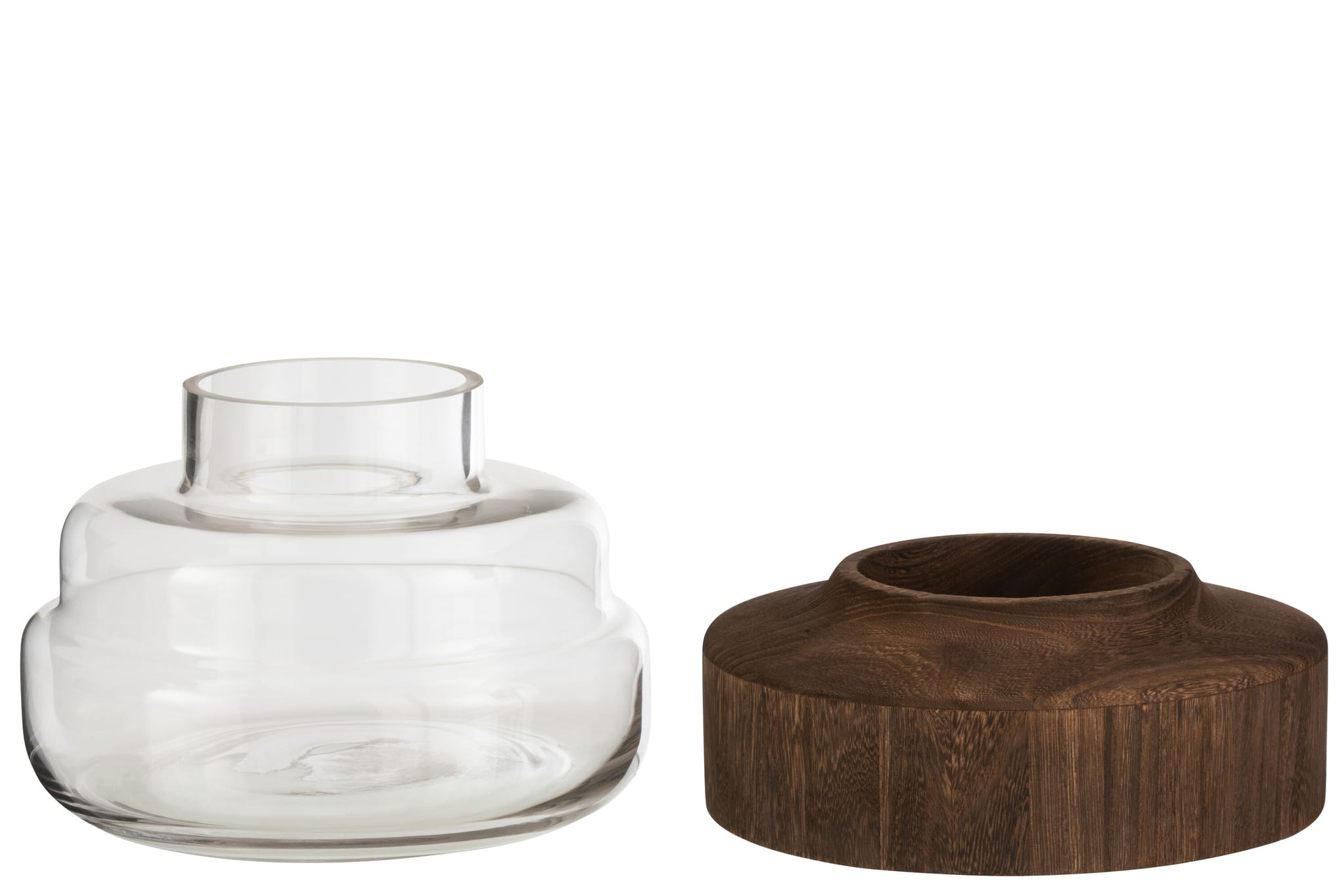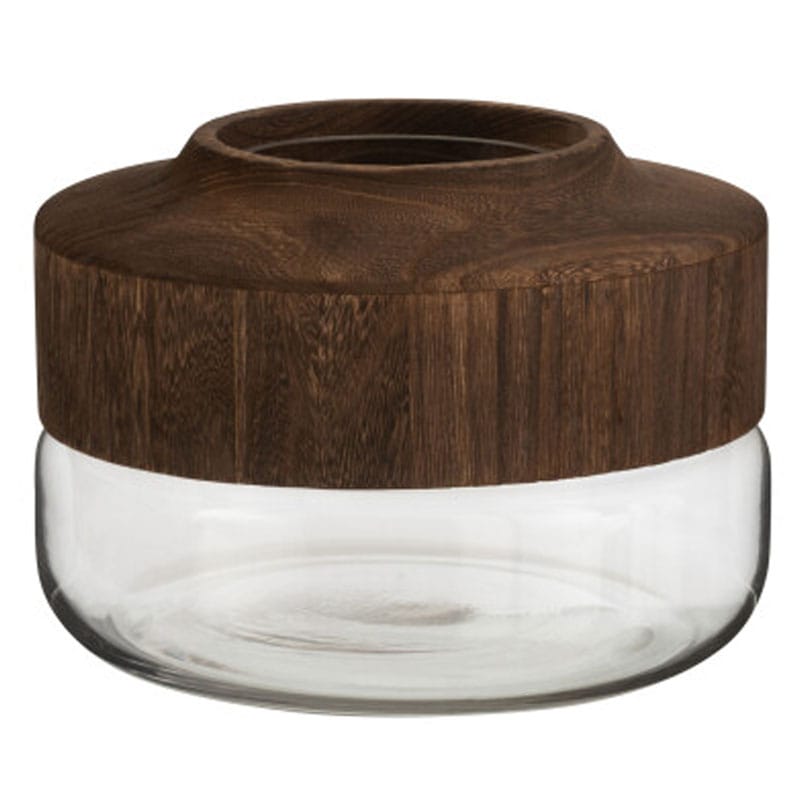 BARAN glazen vaas met houten kap 25cm breed