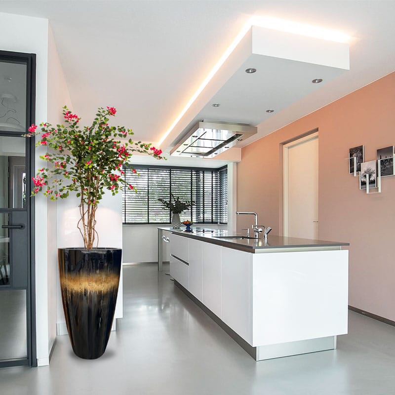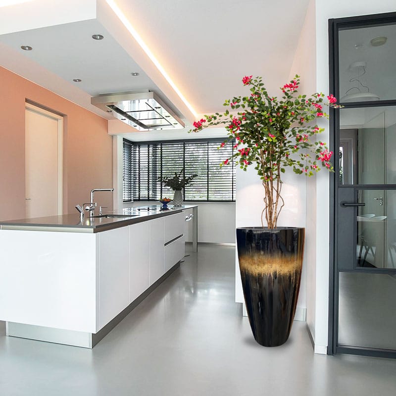 Kunstbloesemboompje met dromerige zalmroze kersenbloesem en echte houten stam. Prachtig in een grote bloempot. Hoogte: 140 cm Kleur: Fuchsia roze Aantal: 1 kunstbloesemboom Artikelnummer: 8249 Gebruik: Indoor Alle HQ zijde en kunst planterie wordt handmatig gemaakt en is bijna niet van echt te onderscheiden. Kleuren en structuren kunnen licht afwijken.