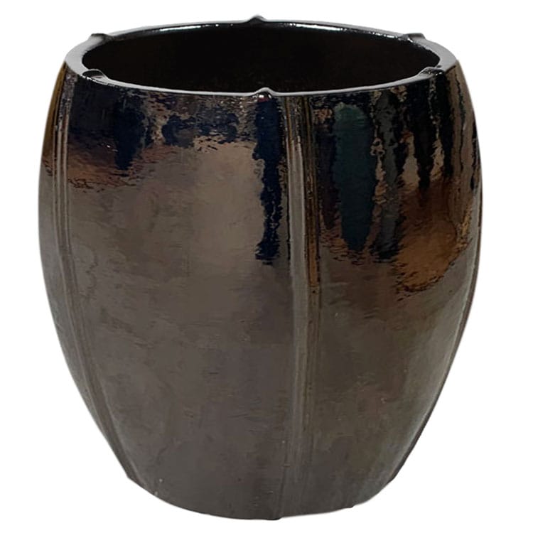 Een tijdloze klassieker uit onze collectie. Deze prachtige high quality bloempot van handgemaakt keramiek met unieke olie gouden metallic glazuur staat overal geweldig. Geschikt voor buiten maar ook prachtig binnenshuis. Deze gold metallic glazuur finish kleurt mee met de omgeving. Doorgaans kleurt hij luxe zwart, zeker binnen. Vol in de avondzon schittert hij grijs-goud. One…
