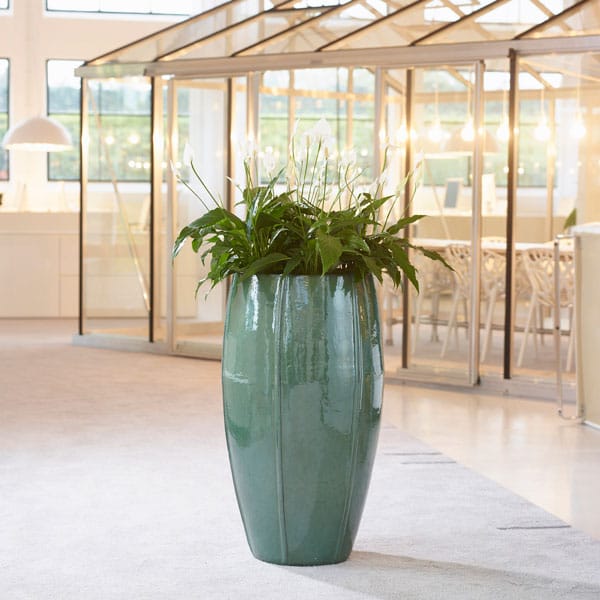 Een tijdloze klassieker uit onze collectie. Deze prachtige high quality hoge vaas van handgemaakt keramiek met een mooie laag speels geglazuurd zeegroen staat overal geweldig. Geschikt voor buiten maar ook prachtig binnenshuis. Afmeting: 53 x 53 x 94  cm Opening: 40 cm Diepte: 90 cm Kleur: Zeegroen Aantal: 1 stuk Artikelnummer: 184 Gebruik: outdoor, voor…