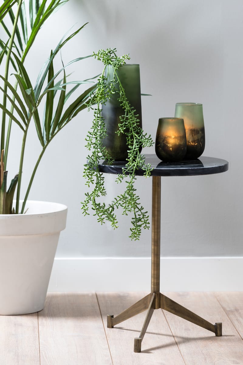 Prachtige plantentafel voor je allermooiste bloempot. Het ontwerp is modern en zelf een tikkeltje stoer wat prachtig en verrassend combineert met een onderstel van warm antiek brons en een tafelblad van luxe zwart marmer. Afmeting: 40 x 40 x 51 cm Kleur: Antiek Brons & Zwart Marmer blad Aantal: 1 stuk Artikelnummer: 6750312 Gebruik: Indoor
