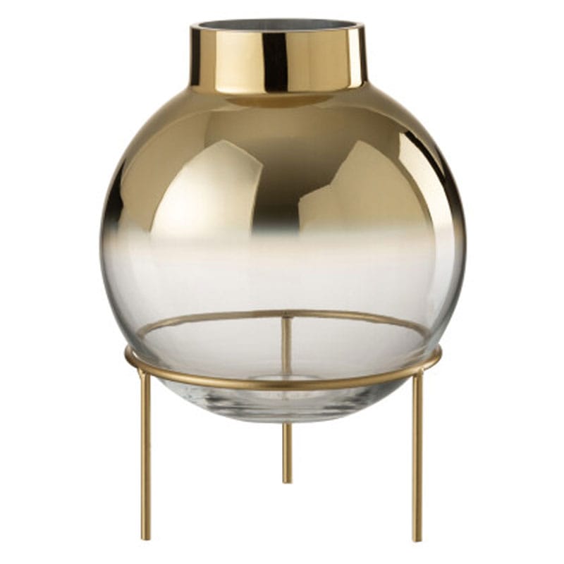 Luxe design vaas met verfijnd ontwerp. De onderkant is van helder transparant glas met een brede bovenrand en het fijne onderstel in hoogglans goudkleur. Een prachtige aanvulling in je interieur. Afmetingen: 22 x 22 x 30 cm Kleur: Goud & Transparant Aantal: 1 stuk Artikelnummer: 95628 Gebruik: Indoor