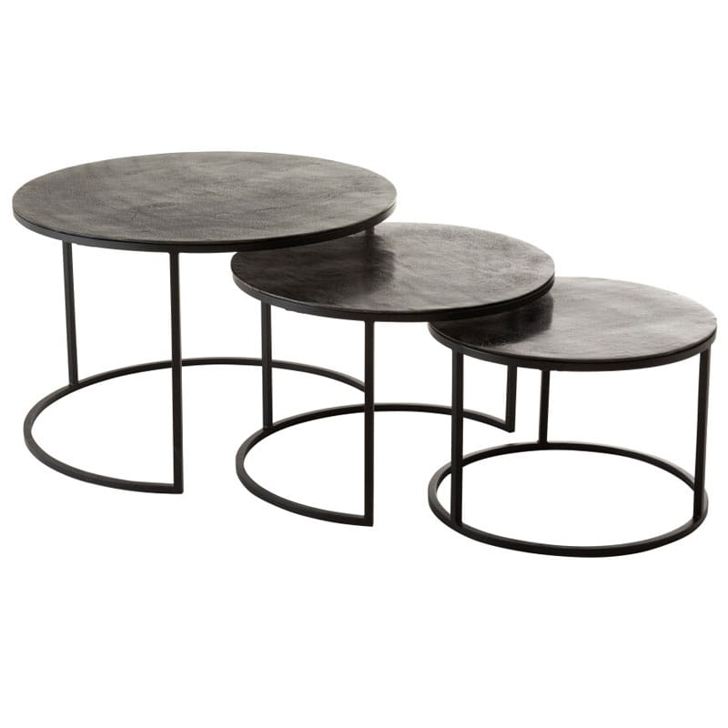 FINOO planten tafels zwart metaal set van 75cm + 59cm + 50cm breed
