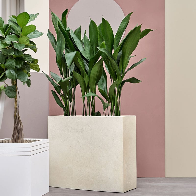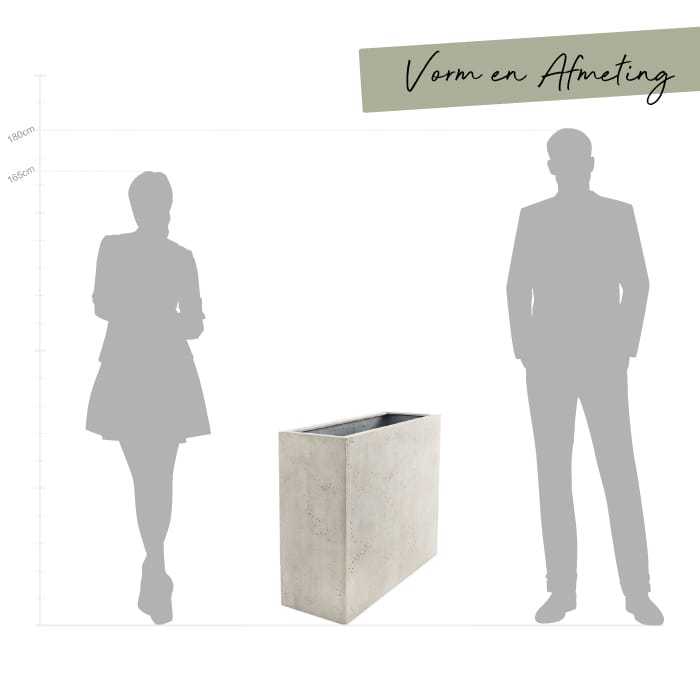 Strak en stoer in een klassiek ontwerp.  Hoge plantenbak in antiek wit betonlook met duidelijke vormgeving. Licht in gewicht maar van hoogwaardig bijna onverwoestbaar polystone. Dat is dus lang en duurzaam genieten. Afmeting: 80 x 30 x 68  cm Opening: 79 x 29 cm Diepte: 66 cm Kleur: Antiek wit Aantal: 1 stuk Artikelnummer: 2382…
