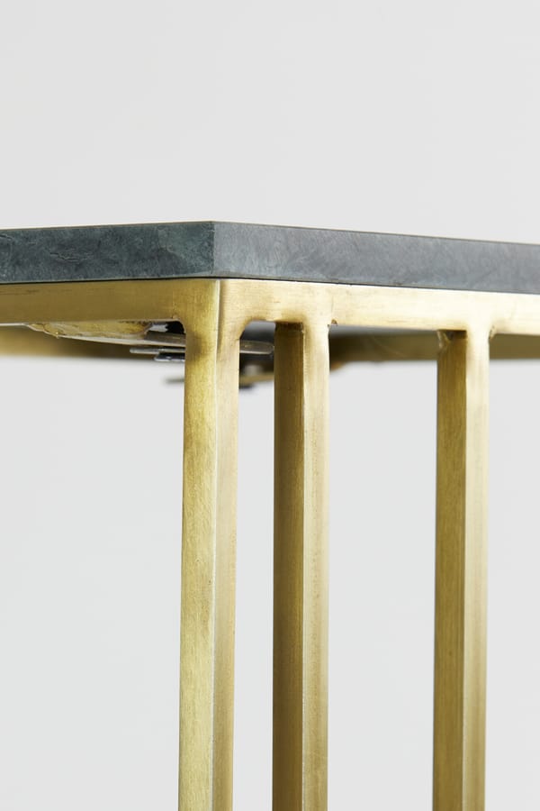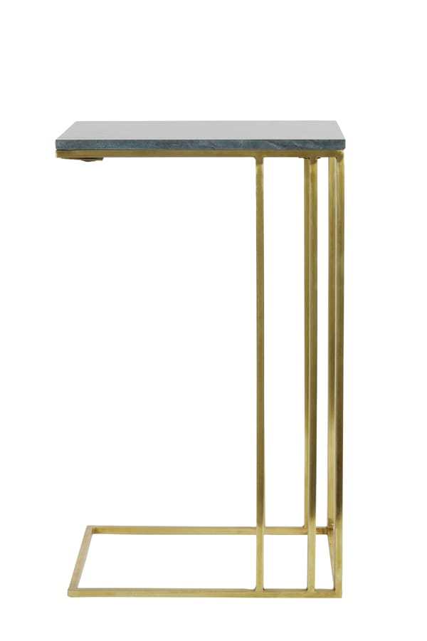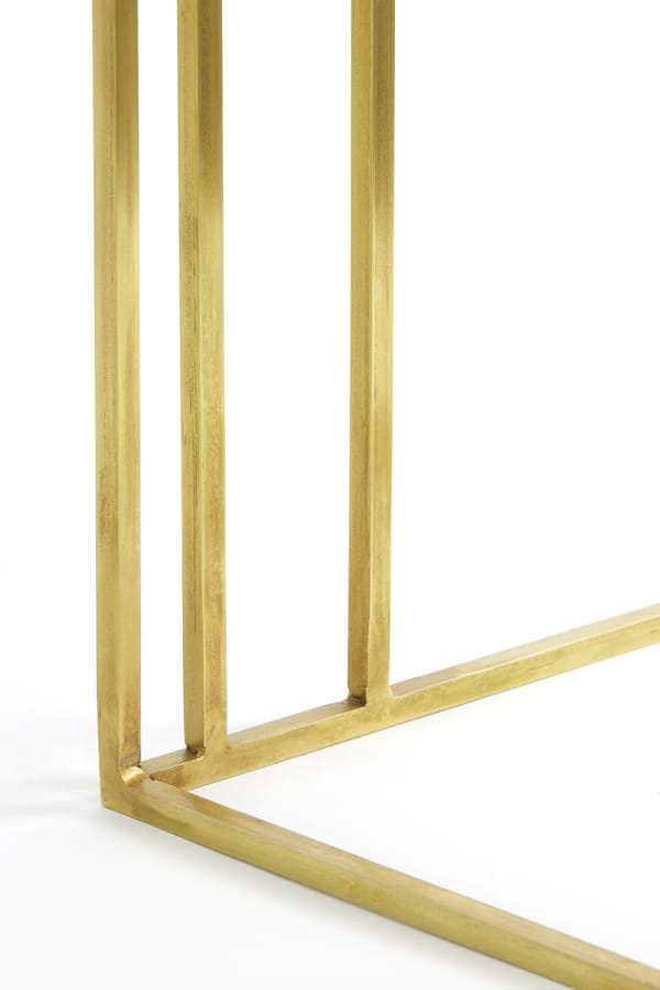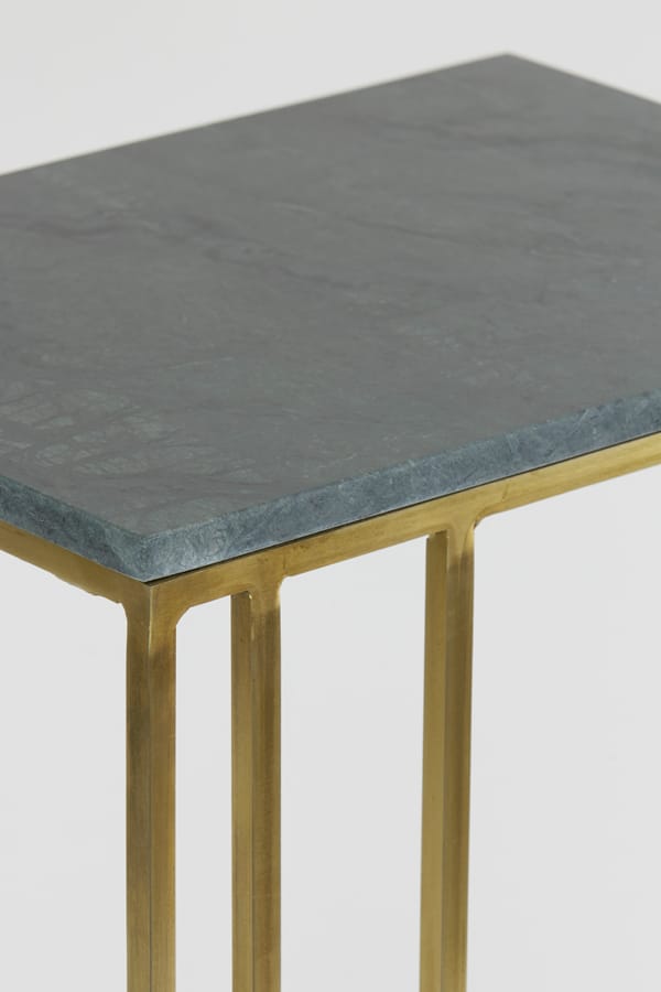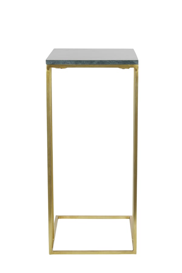 Luxe design plantentafel met een metalen onderstel in antiek brons kleur en een tafelblad van groen marmer. Met dubbele asymmetrisch aangebrachte pootjes voor een visueel stijlvol effect. Het ontwerp is verfijnd en open met een strak moderne look. Geef je bloempotten de zichtbare en stralende plek die ze verdienen. Afmetingen: 41 x 31 x 71…
