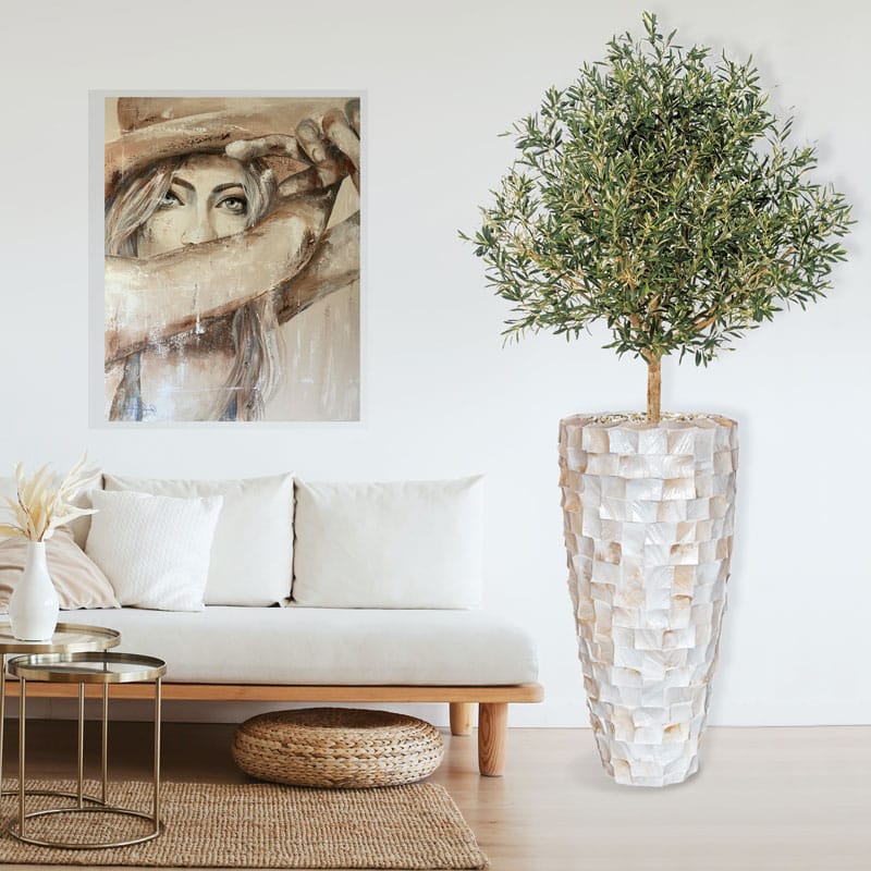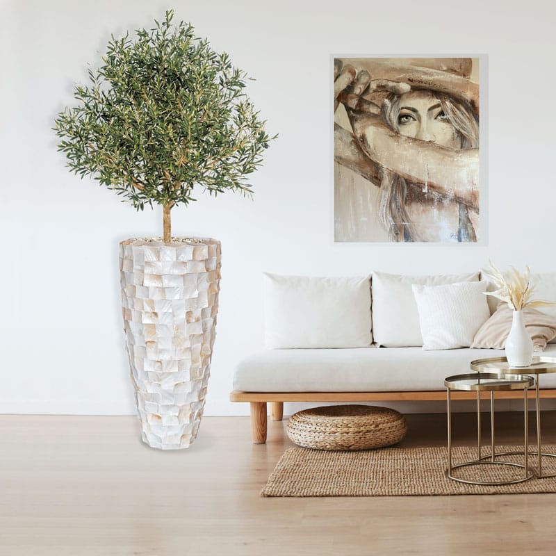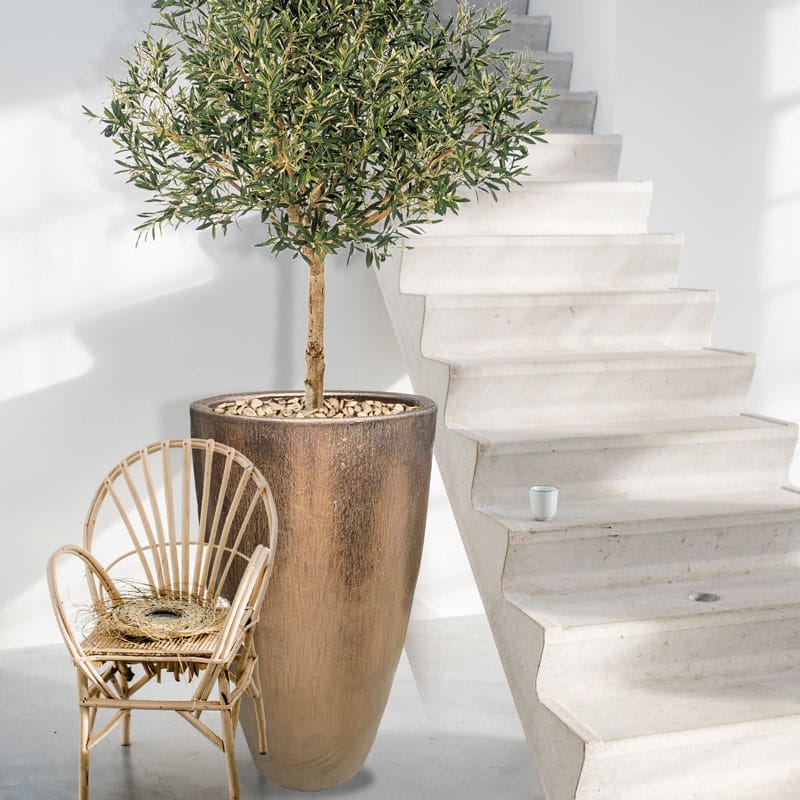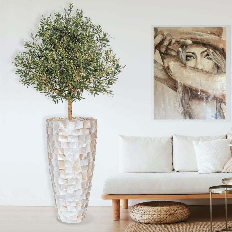 Deze prachtige volle en hoge Olijfboom op stam met groen blad en echte houten stam brengt je terug naar heerlijke, mediterrane zomers. Niet van echt te onderscheiden high quality kunstplant. Mooi in een grote pot. Hoogte: 150 cm Kleur: Groen in pot Aantal: 1 kunstboom Artikelnummer: 8251 Gebruik: Indoor Alle HQ zijde en kunst planterie…