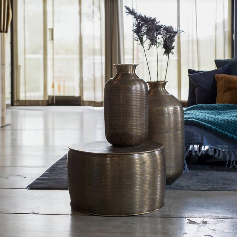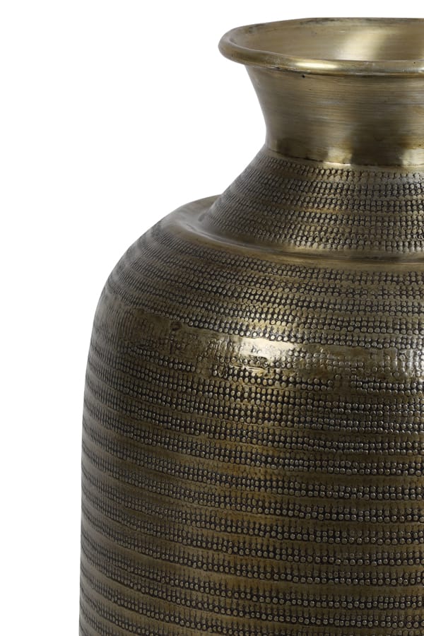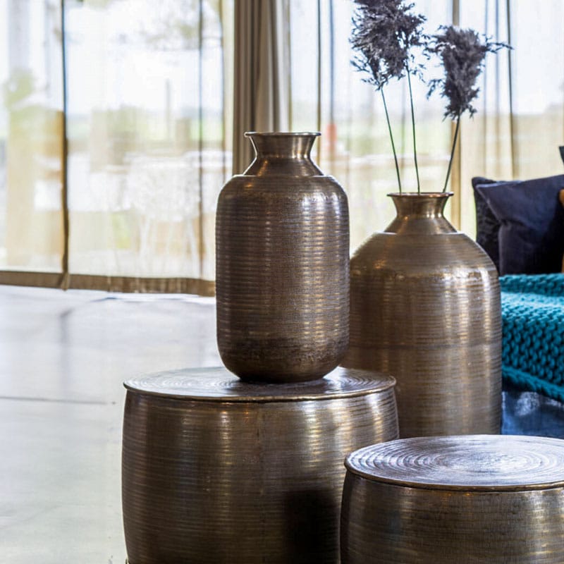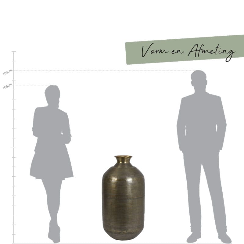 Prachtige hoge luxe vaas van metaal in een warm antiek brons kleur. De buitenkant heeft een bewerkt patroon voor een extra authentieke look. Mooi om als eyecatcher midden op je eettafel te zetten, of juist in een mooi hoekje voor jezelf. Afmetingen: 40 x 40 x 78 cm Kleur: Antiek Brons Aantal: 1 stuk Artikelnummer:…