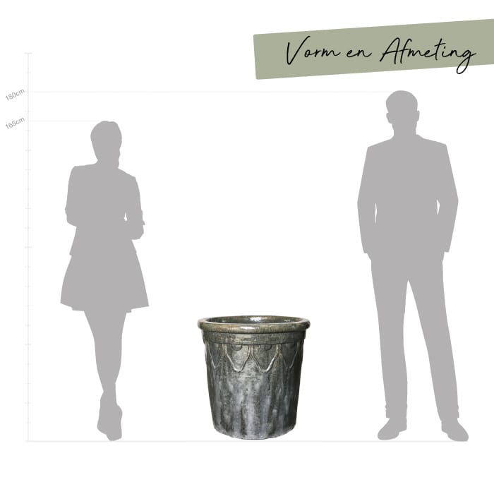 Prachtig vormgegeven grote plantenbak van HQ keramiek met bijzondere glazuurlaag in grijsblauw gemeleerde kleuring. Afmeting: 60 x 60 x 60 cm Kleur: Grijsblauw Aantal: 1 stuk Artikelnummer: 2796 Gebruik: outdoor, voor gebruik indoor kun je een binnenvaas bijbestellen via deze link. Outdoor potterie heeft meestal een opening in bodem voor de afwatering, indoor potterie heeft dat…