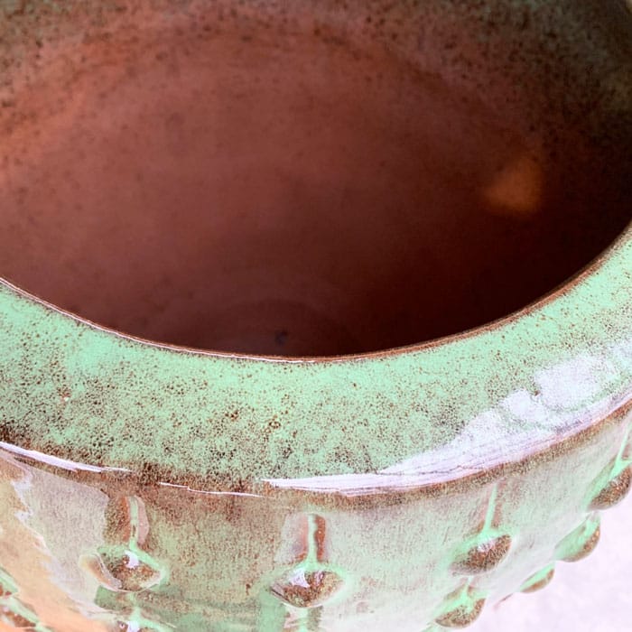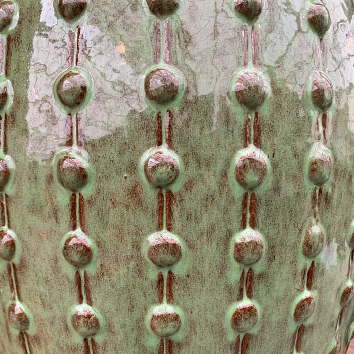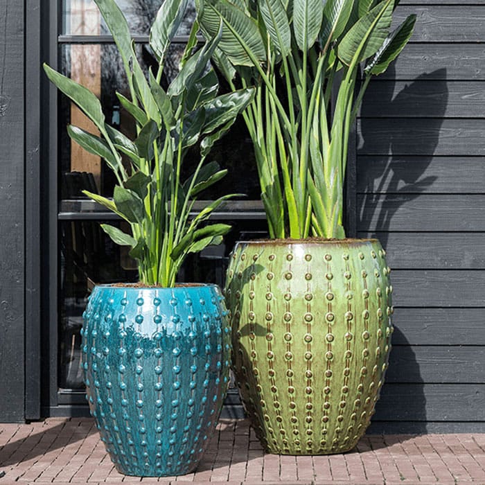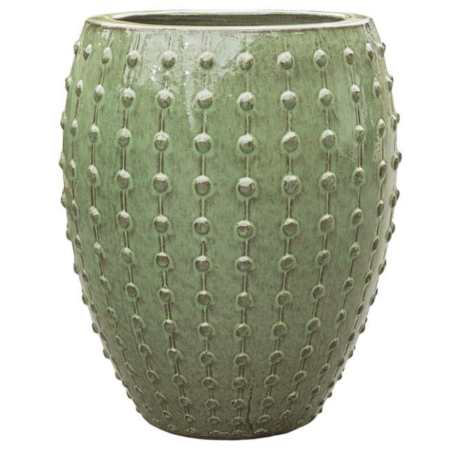 Een plaatje van een bloempot.. Met een luxe laag olijfjesgroen glazuur en speels noppenreliĆ«f. High quality handgemaakt keramiek. Geschikt voor buiten maar ook prachtig voor binnen. Afmeting: 44 x 44 x 55 cm Opening: 29 cm Diepte: 53 cm Kleur: Groen Aantal: 1 stuk Artikelnummer: 2075 Gebruik: outdoor, voor gebruik indoor kunt u een binnenvaas…