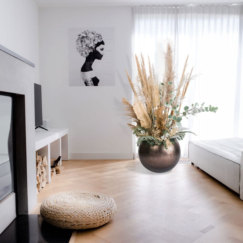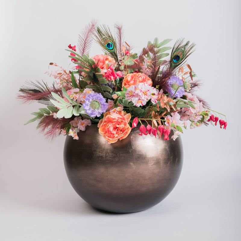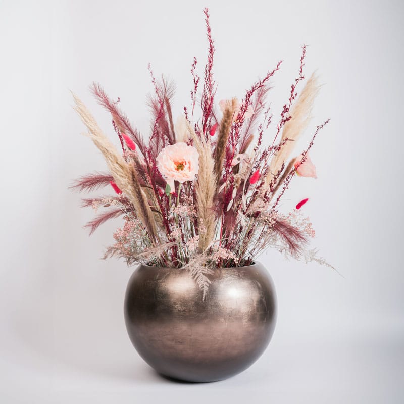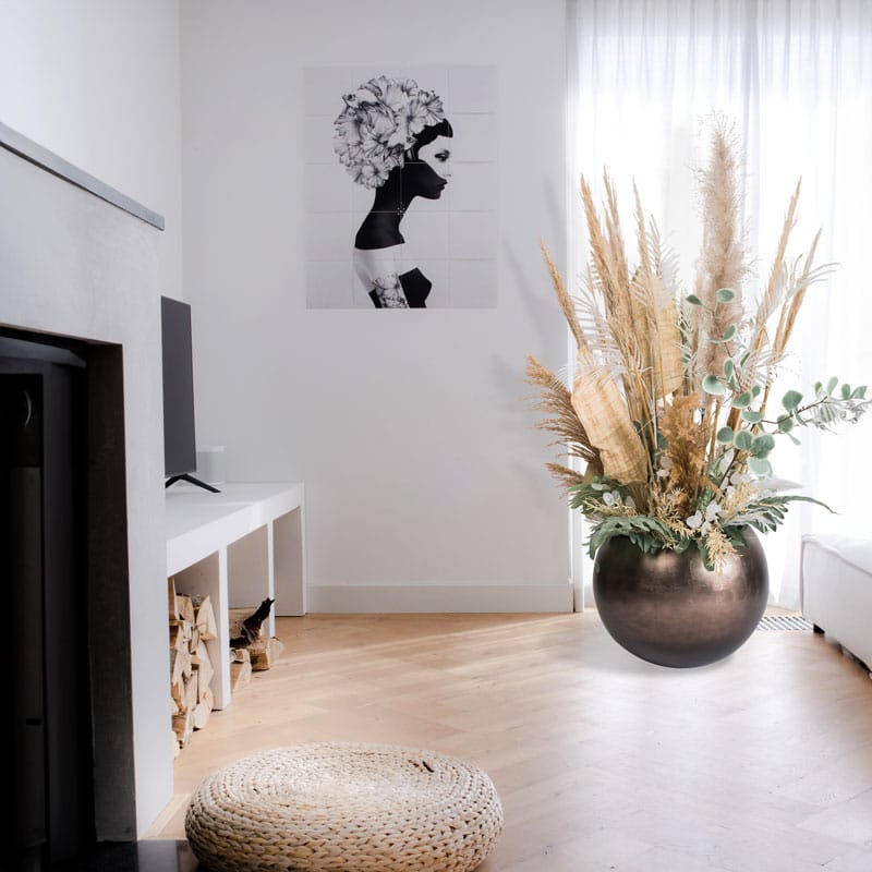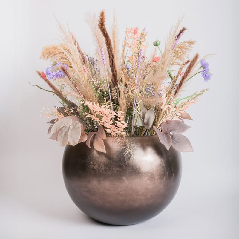 Grote ronde luxe plantenbowl in een prachtig en bijzonder taupe bruine zilveren kleur en subtiel dip dye effect. Afmeting: 50 x 50 x 37 cm Opening: 35 cm Diepte: 30 cm Kleur: Taupe zilver Aantal: 1 stuk Artikelnummer: 2199 Gebruik: Indoor, inclusief ingebouwde uitneembare 100% waterdichte binnenvaas. Bijna al onze potterie handgemaakt en daarom uniek…