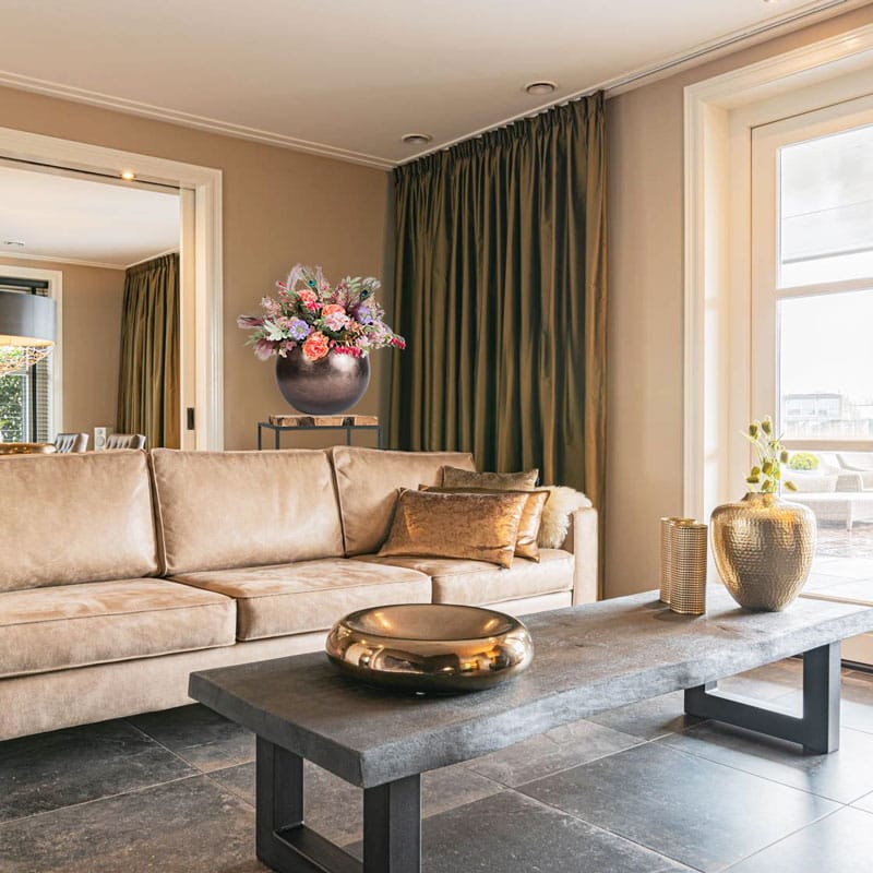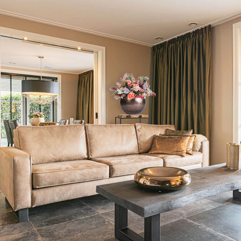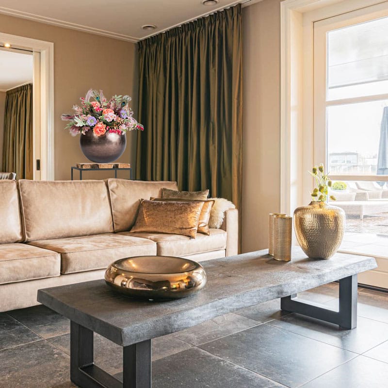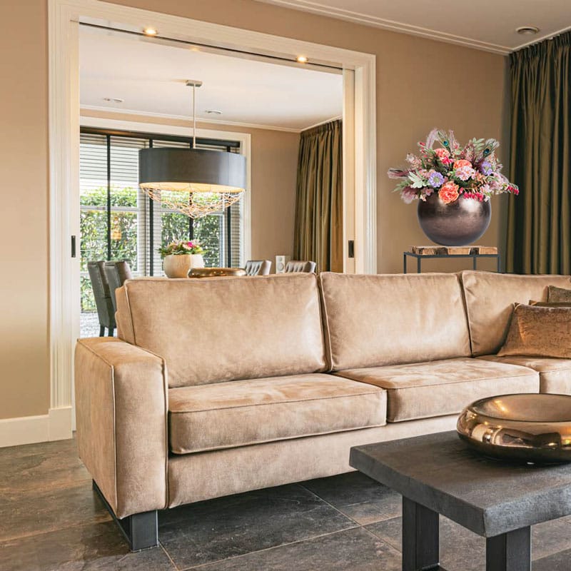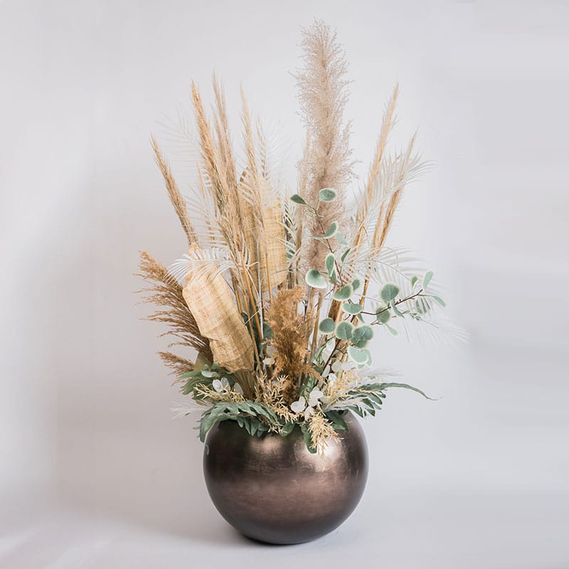 Grote ronde luxe plantenbowl in een prachtig en bijzonder taupe bruine zilveren kleur en subtiel dip dye effect. Afmeting: 50 x 50 x 37 cm Opening: 35 cm Diepte: 30 cm Kleur: Taupe zilver Aantal: 1 stuk Artikelnummer: 2199 Gebruik: Indoor, inclusief ingebouwde uitneembare 100% waterdichte binnenvaas. Bijna al onze potterie handgemaakt en daarom uniek…