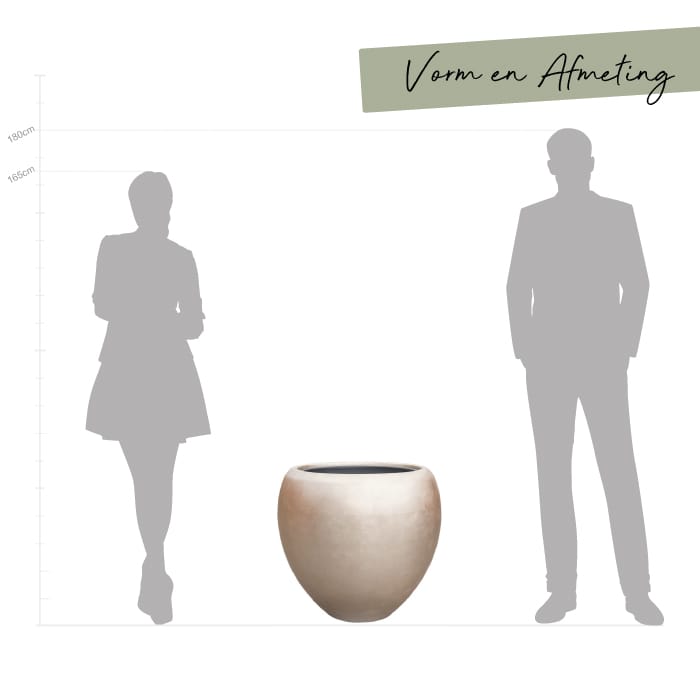 Brede heerlijk luxe vaas met zacht patroon in een in een mat metallic afwerking en subtiel dip dye effect. Afmeting: 60 x 60 x 55 cm Opening: 42 cm Diepte: 55 cm Kleur: Champagne Aantal: 1 stuk Artikelnummer: 2722 Gebruik: Indoor, inclusief ingebouwde uitneembare 100% waterdichte binnenvaas. Bijna al onze potterie handgemaakt en daarom uniek…