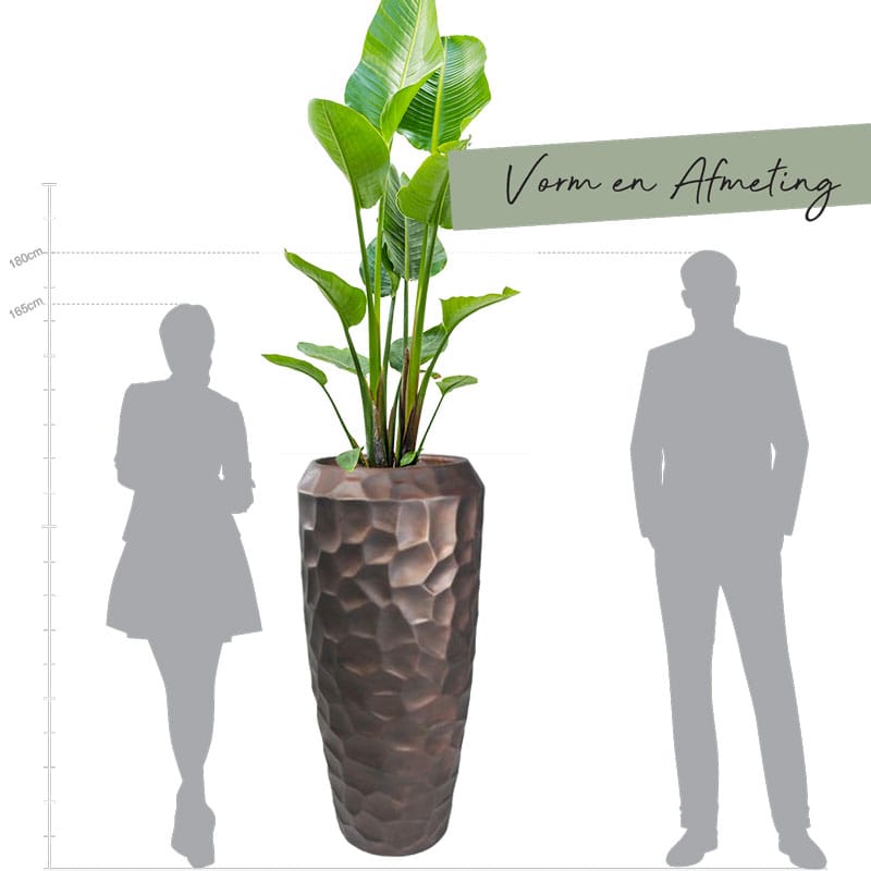 Grote luxe hoge vaas van HQ lichtgewicht kunststof steen. Prachtig design en reliëf in brons zwart. Afmeting: 55 x 55 x 125 cm Aantal: 1 stuk Artikelnummer: 2844A Gebruik: outdoor, voor gebruik indoor kunt u een binnenvaas bijbestellen via deze link. Afwatering uitsparing in bodem: nee, vanwege het luxe kenmerk kunt u de plaatsing zelf bepalen,…