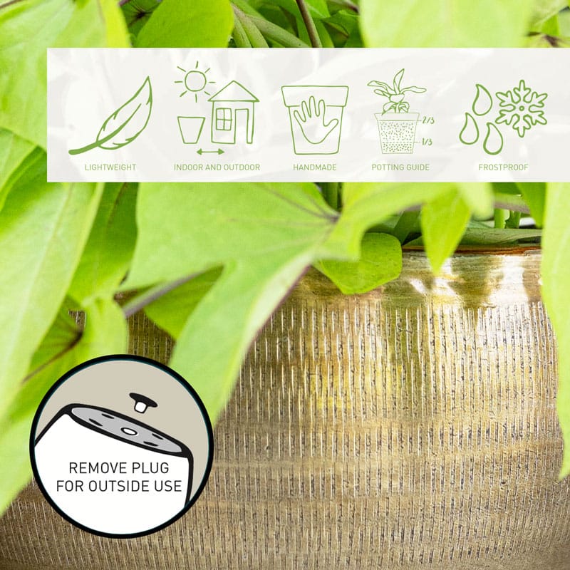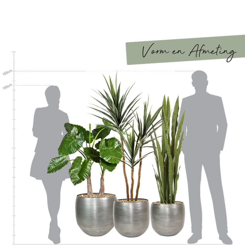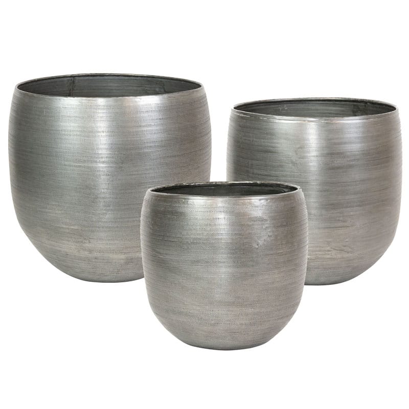 Heerlijk robuust metalen bloembakken set met zachte vorm. Een hele fijne combinatie met fijn patroon. Vernieuwend en uitdagend, dit zalige design! Afmetingen: D31 H28, D38 H35, D42 H42 Kleur: Lood Aantal: 3 stuks Artikelnummer: 2931 Gebruik: outdoor, voor gebruik indoor kunt u een binnenvaas bijbestellen via deze link. Bijna al onze potterie handgemaakt en daarom uniek…