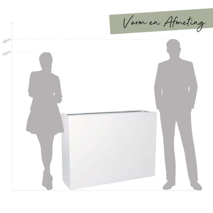 Strak, modern en helder. Hoge plantenbak en tevens divider in hoogglans wit. Van high quality polystone dus licht van gewicht maar ook duurzaam en sterk. Geschikt voor buiten en binnen. Afmeting: 124 x 33 x 90 cm Opening: 116 x 25 cm Diepte: 88 cm Kleur: Hoogglans wit Aantal: 1 stuk Artikelnummer: 2344 Gebruik: outdoor,…