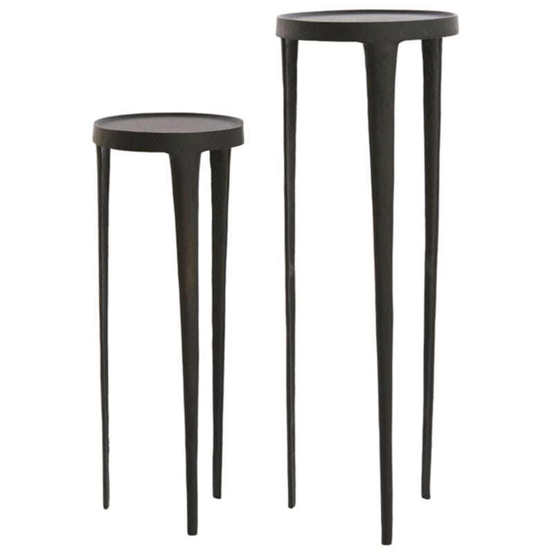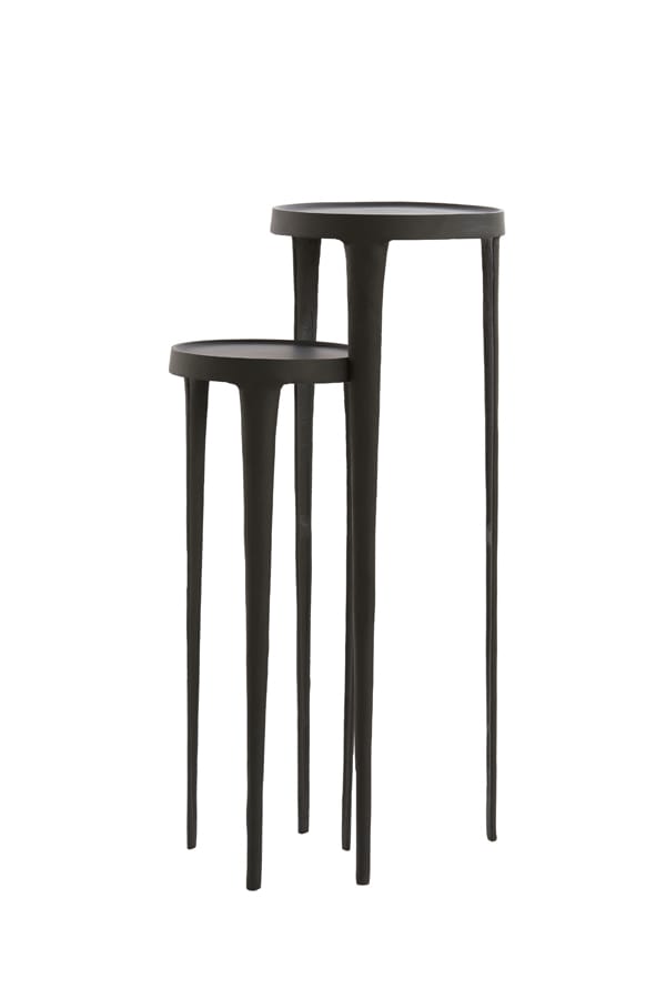 Fijne set van twee hoge metalen plantenzuilen in mat zwart. In 2 verschillende hoogtes voor een visueel stijlvol effect. Het ontwerp is verfijnd en open. Geef je vazen de zichtbare en stralende plek die ze verdienen. Afmetingen: H80 D30 & H100 D35 Kleur: Zwart Aantal: 2 stuks Artikelnummer: 6772412 Gebruik: Indoor