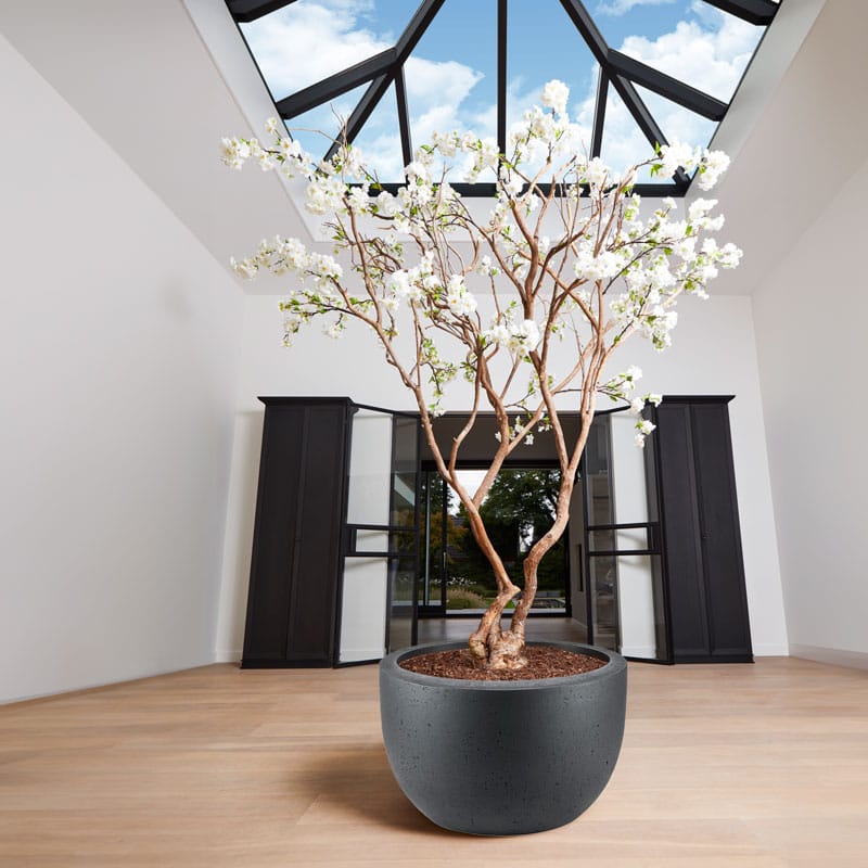 Heerlijk grote en brede stijlvolle design bloempot in antraciet grijs. De bloempot heeft een luxe uitstraling, een prachtige strakke voluptueuzeeivorm en een verfijnde licht ruwe afwerking. Een pareltje voor in je tuin. Afmeting: 110 x 110 x 65 cm Opening: 100 cm Diepte: 64 cm Kleur: Antraciet Aantal: 1 stuk Artikelnummer: 3050 Gebruik: outdoor, voor gebruik…