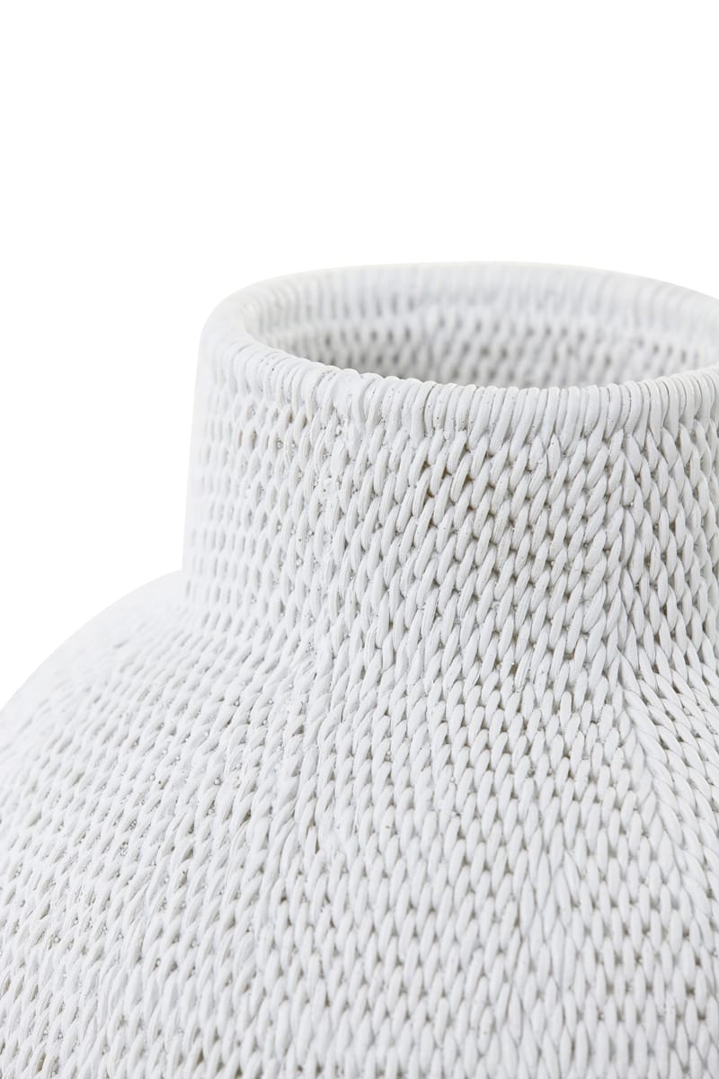 Luxe en decoratieve vaas met prachtige vormgeving en de rustieke uitstraling van gevlochten riet. Afmetingen: 40 x 40 x 60 cm Diepte: 59 cm Kleur: Wit Aantal: 1 stuk Artikelnummer: 5996526 Gebruik: Indoor, niet waterdicht Bijna al onze potterie handgemaakt en daarom uniek in patroon, kleuring en niet 100% waterdicht. Een binnenvaas is ideaal om…