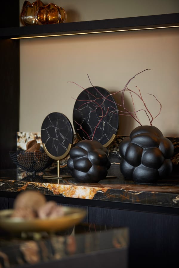 Mag het van jou net even anders? Deze arty design vaas heeft een bijzonder en opvallend bubbelpatroon in diep mat zwart. Prachtig met kleurige bloemen maar ook heel geschikt als losse decoratie op een mooi plekje in je huis. Afmetingen: 31 x 31 x 31 cm Opening:  cm Diepte: 30 cm Kleur: Zwart Aantal: 1…