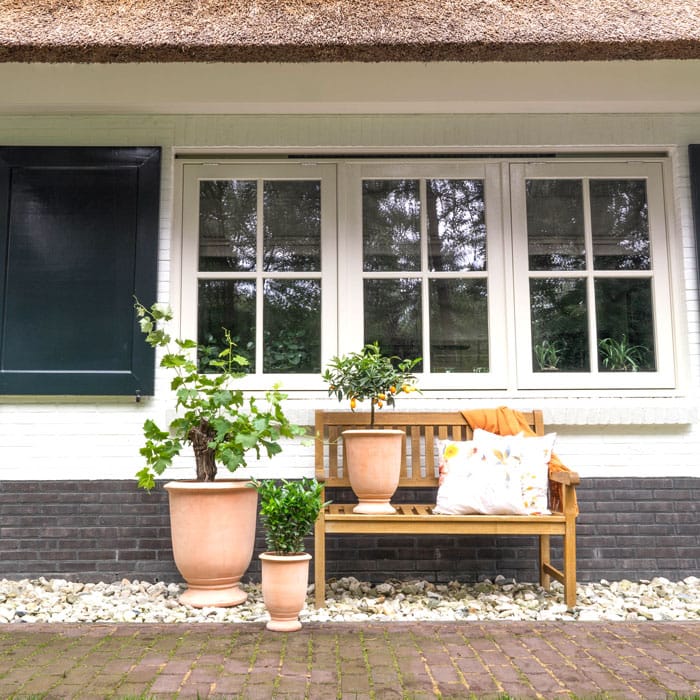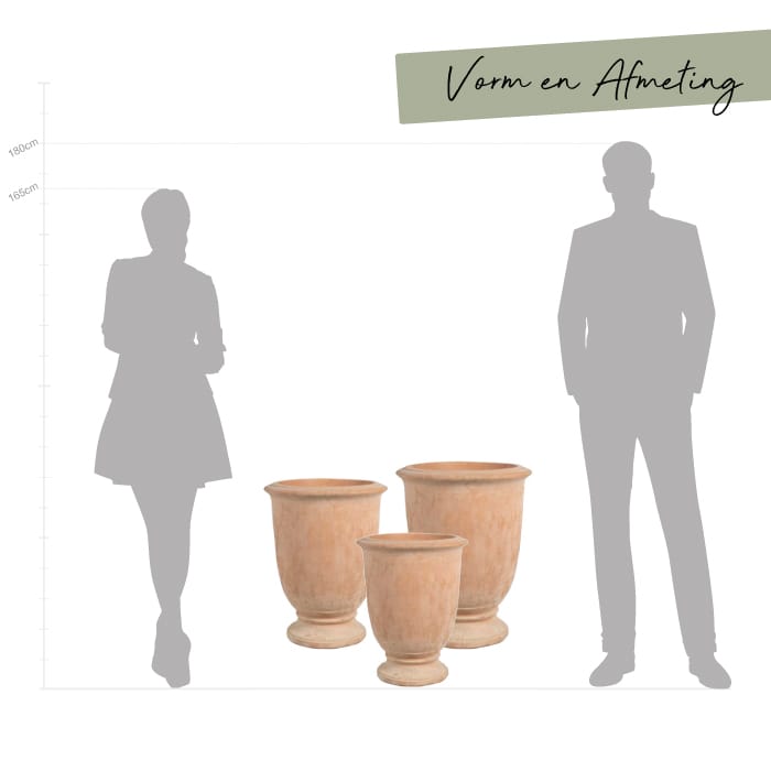 Een klassieker die doet verlangen naar vakanties in Italië of heerlijk landelijk leven. Door de zachte white wash heeft deze set potten nu al een rustieke uitstraling en dat is nu juist de grote charme van terracotta.  Deze prachtige potten zijn handgemaakt in Italië. Afmetingen: D22 H30, D32 H40, D48 H58 Kleur: Oud Italiaans terracotta Aantal:…