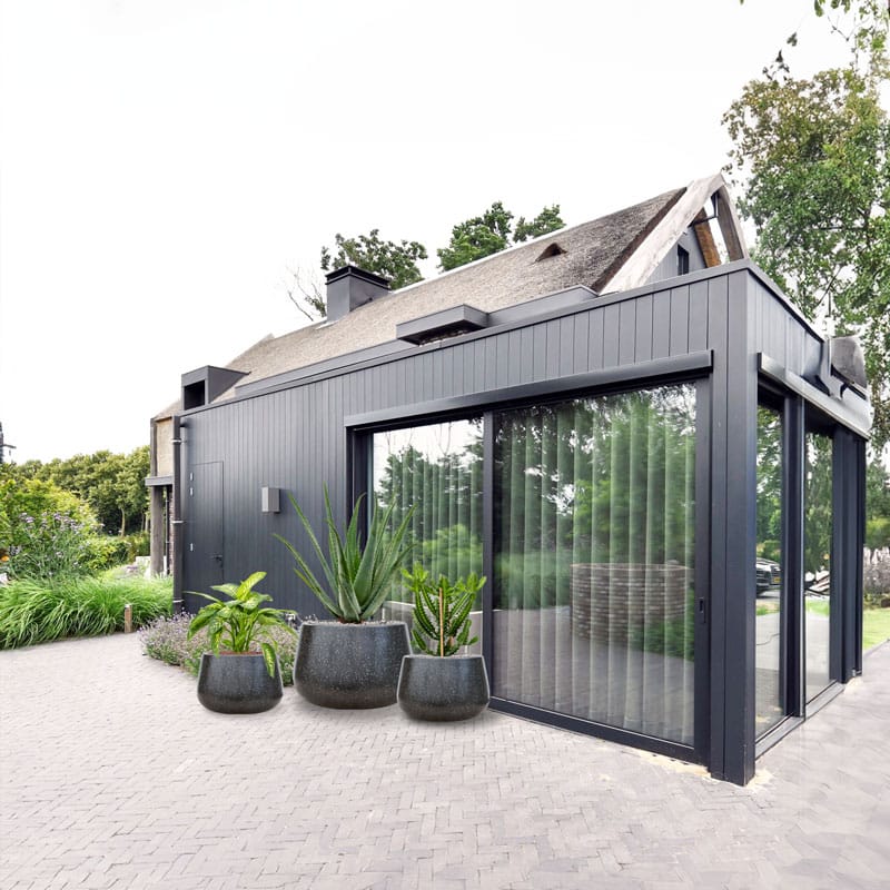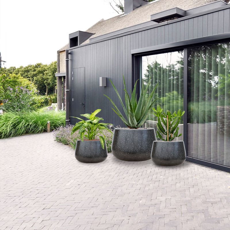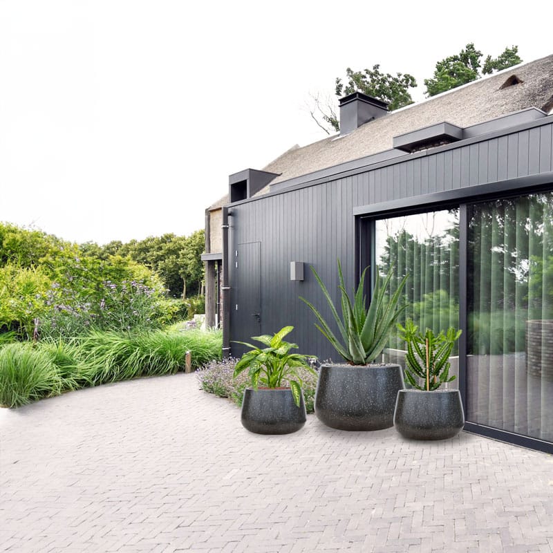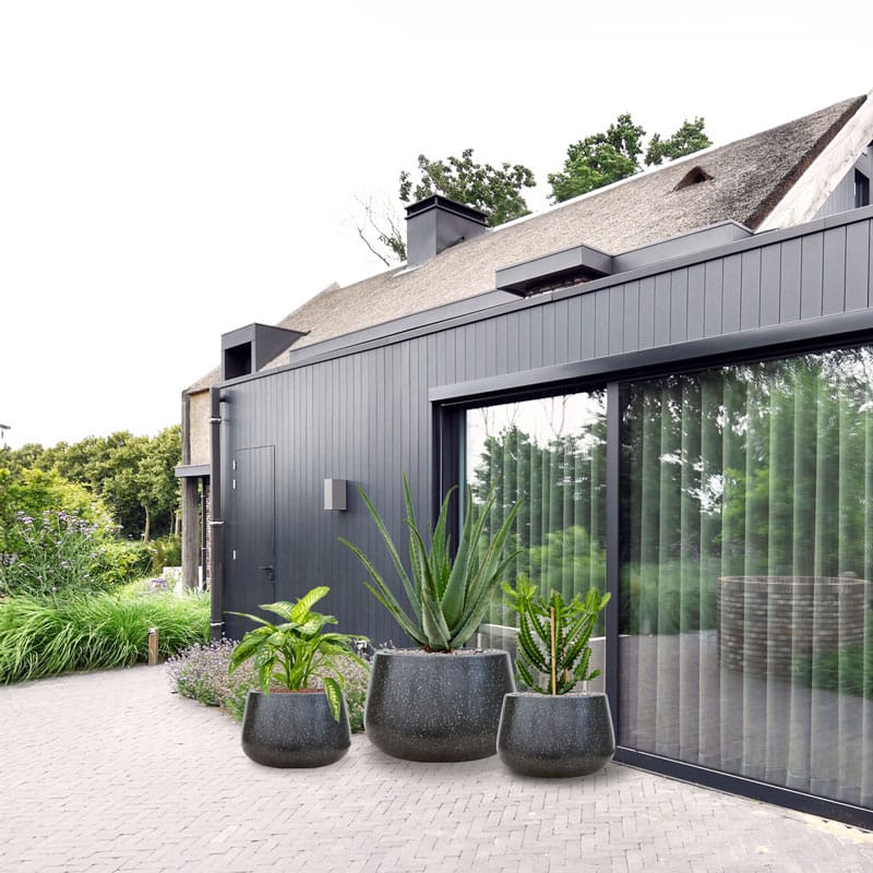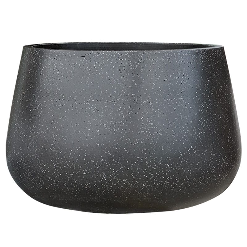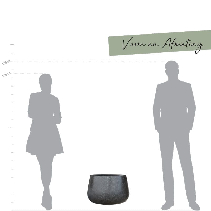 De authentieke terrazzo look in een nieuwe jasje. Luxe uitstraling door kleine stukjes gemalen steen. Prachtige brede bloempot voor buiten in een heerlijke en bijzondere afgeronde vormgeving. Van high quality polystone dus licht van gewicht maar oersterk. Afmeting: 51 x 51 x 34 cm Opening: 43 cm Diepte: 33 cm Kleur: Mat Zwart Aantal: 1…