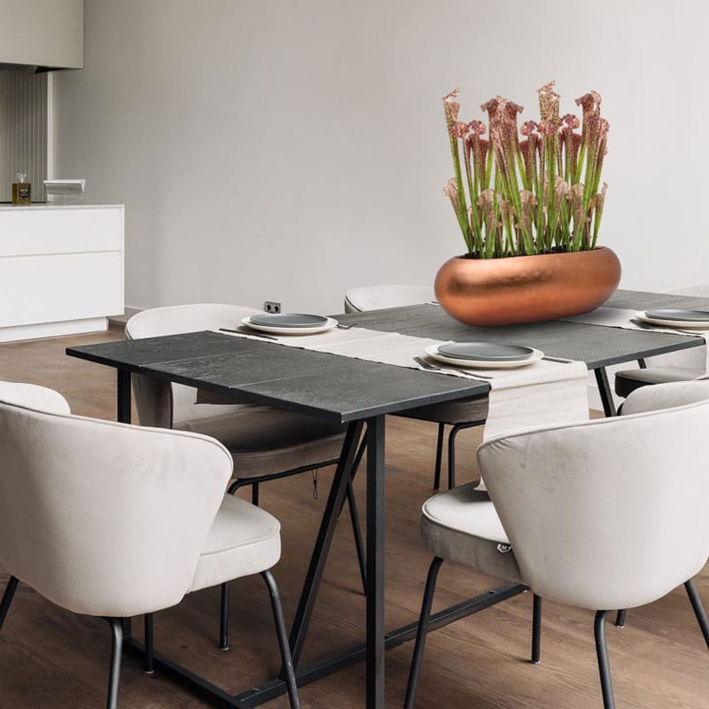 Prachtige vleesetende trompetbekerplant met zijdezachte doorschijnende kelken. De Sarracenia is bijna niet van echt te onderscheiden. De charme van een kamerplant zonder de zorgen. Hoogte: 65 cm Kleur: Paars groen Aantal: 1 kunstplant Artikelnummer: 8109 Gebruik: Indoor Alle HQ zijde en kunst planterie wordt handmatig gemaakt en is bijna niet van echt te onderscheiden. Kleuren…