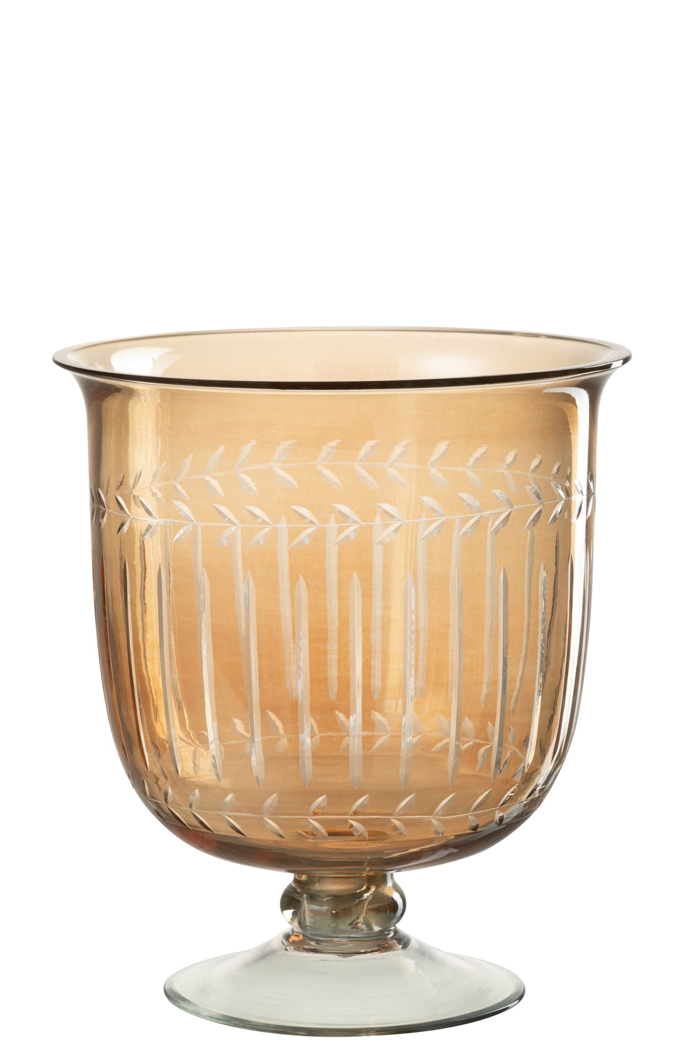 Prachtige en opvallend gekleurde glazen vaas op een stijlvol voetje. De vaas is qua vorm en gravure-dessin speels geïnspireerd op de Romeinse stijl. Een pareltje voor op een fijn plekje in je huis. Mooi als los object, maar ook heel leuk te combineren met de andere vazen tot een mooi setje. Heerlijk om te vullen…