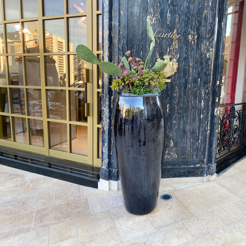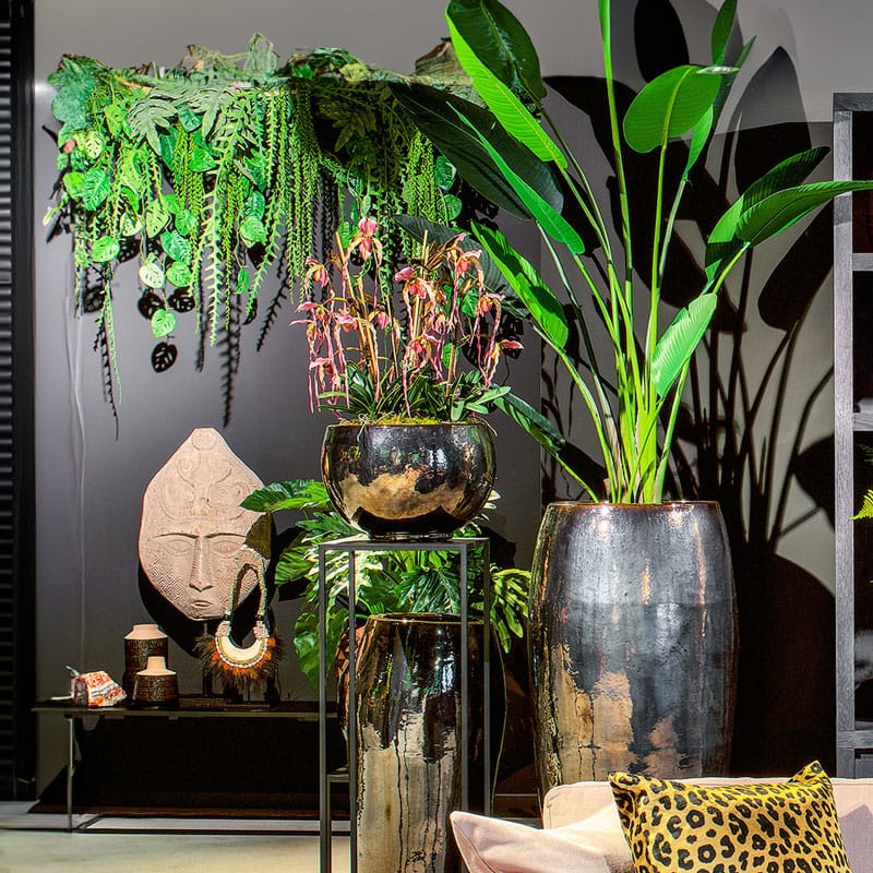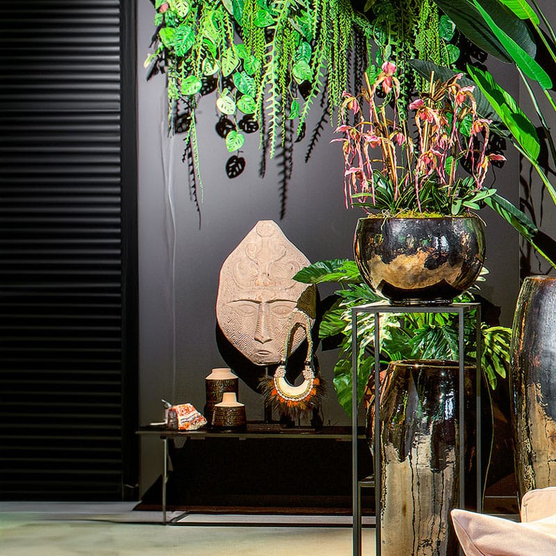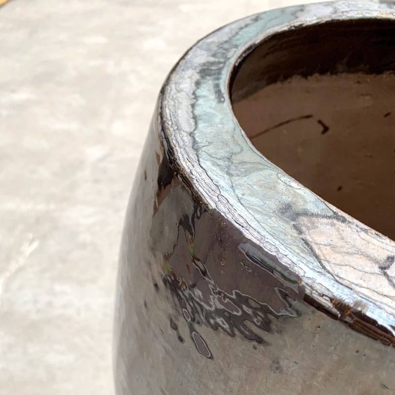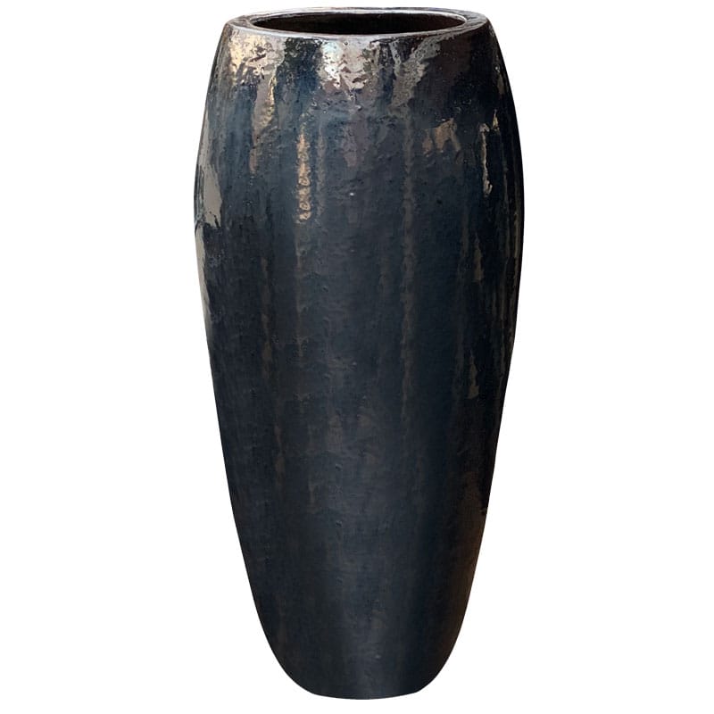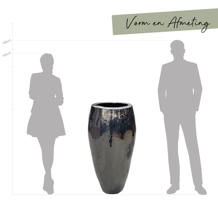 Stijlvolle extra grote bloempot van high quality handgemaakt keramiek in de bijzondere kleur metallic nachtblauw. One of a kind kleur die bij elk licht anders oogt. Van donkerblauw, zilver tot diep hoogglans zwart. Afmeting: 41 x 41 x 100 cm Opening: 27 cm Diepte: 98 cm Kleur: Metallic nachtblauw Aantal: 1 stuk Artikelnummer: 2673 Gebruik:…