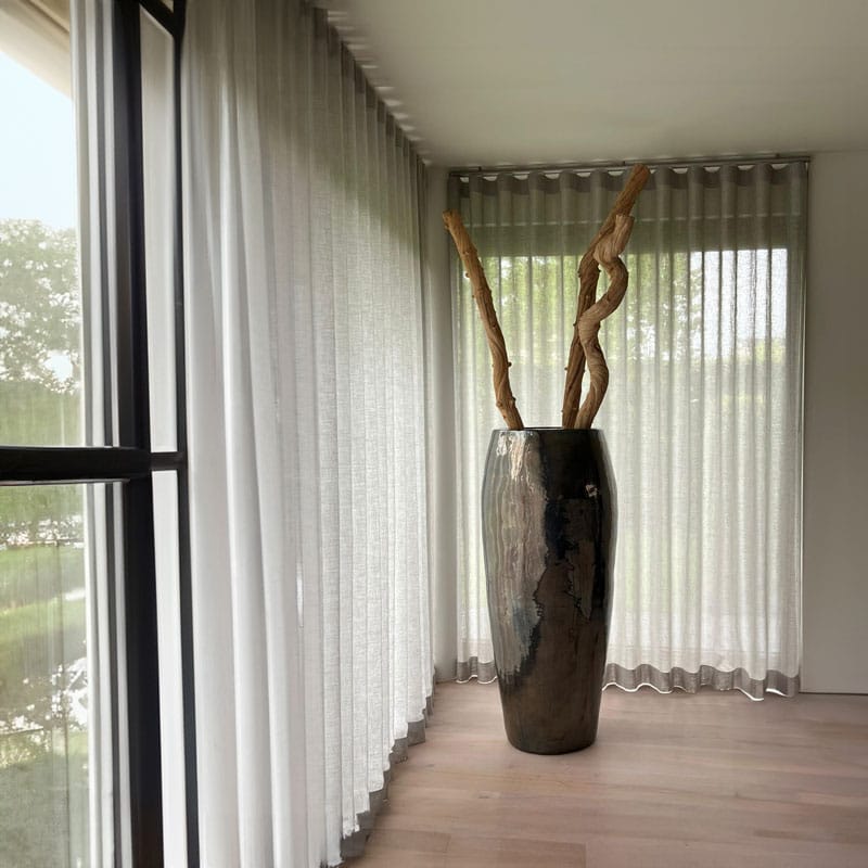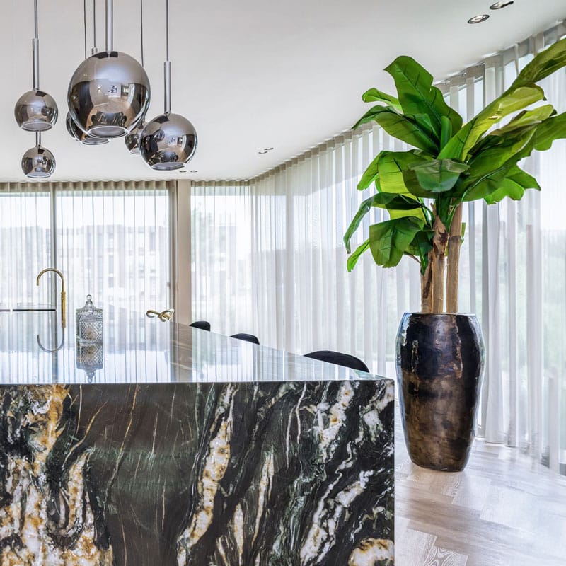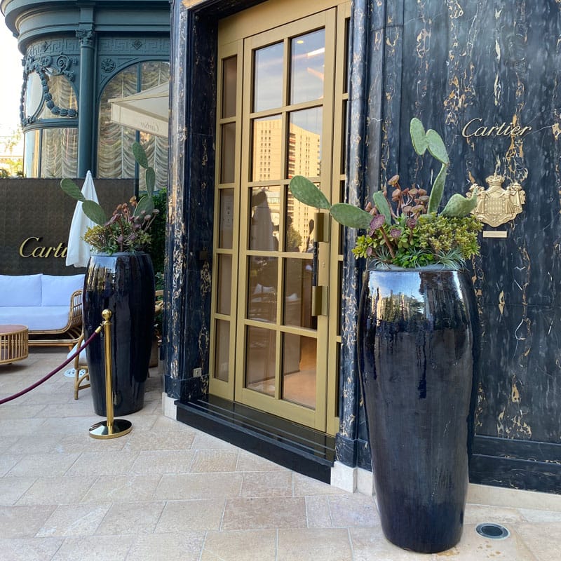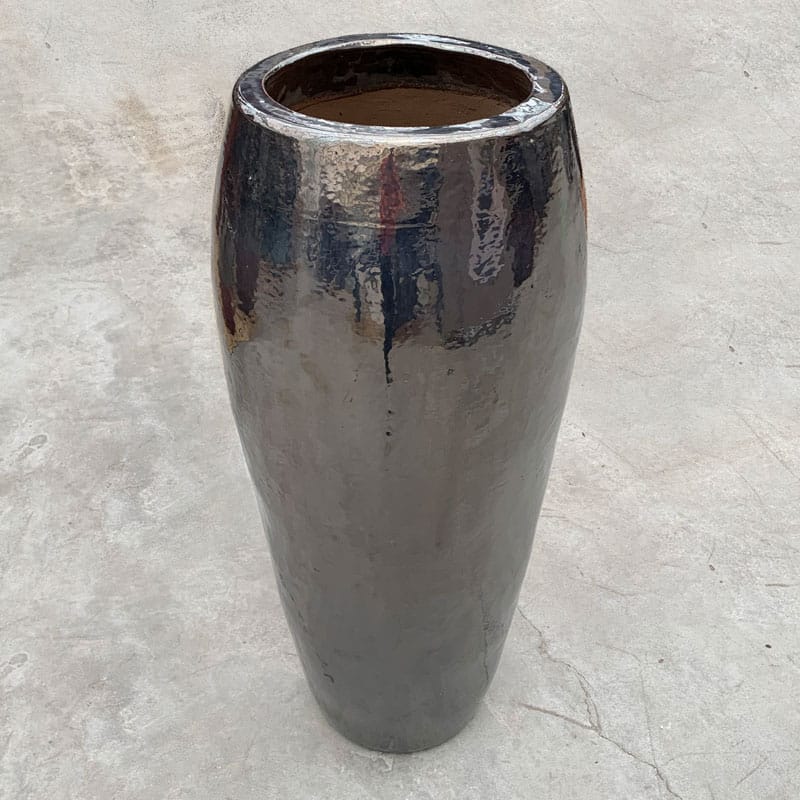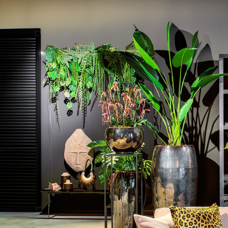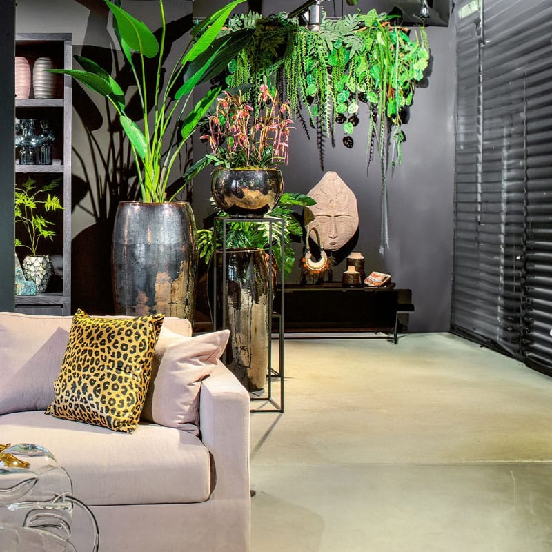 Stijlvolle extra grote bloempot van high quality handgemaakt keramiek in de bijzondere kleur metallic nachtblauw. One of a kind kleur die bij elk licht anders oogt. Van donkerblauw, zilver tot diep hoogglans zwart. Afmeting: 41 x 41 x 100 cm Opening: 27 cm Diepte: 98 cm Kleur: Metallic nachtblauw Aantal: 1 stuk Artikelnummer: 2673 Gebruik:…