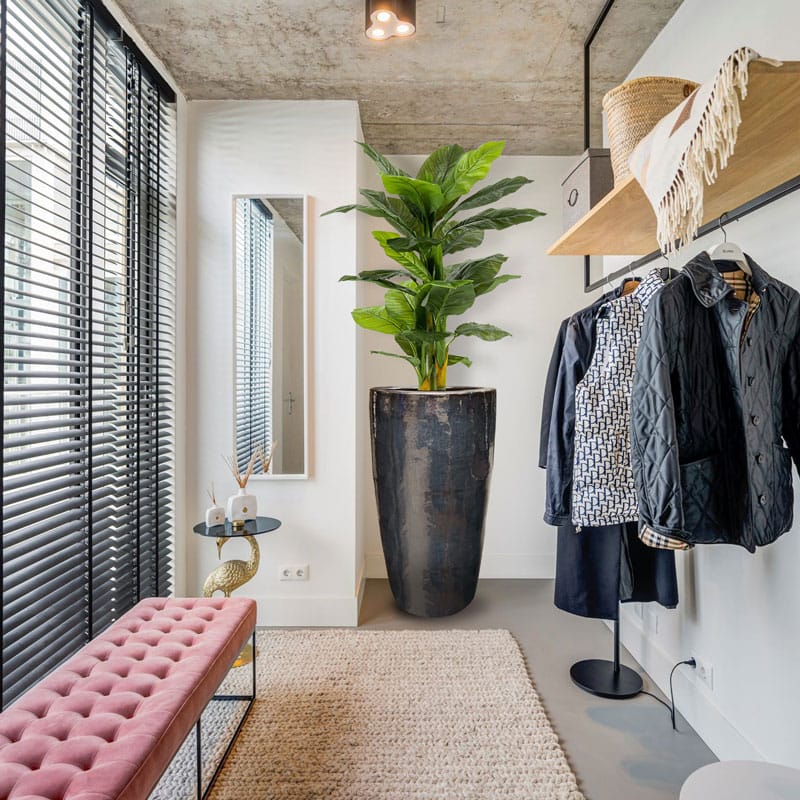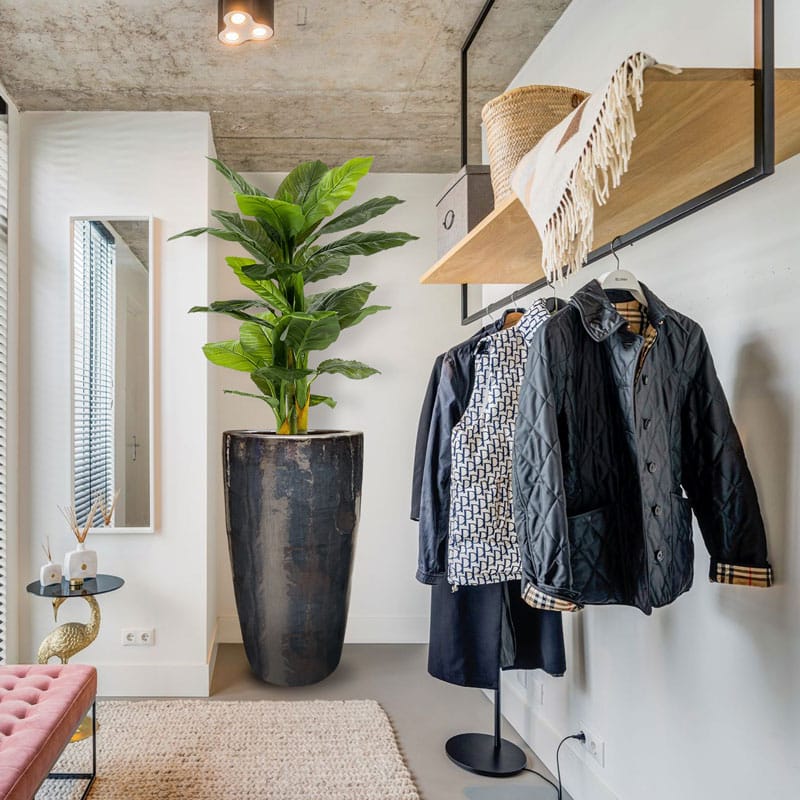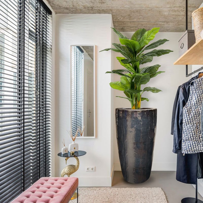 Stijlvolle hoge bloempot van high quality handgemaakt keramiek in de bijzondere kleur metallic nachtblauw. One of a kind kleur die bij elk licht anders oogt. Van donkerblauw, zilver tot diep hoogglans zwart. Afmeting: 46 x 46 x 90 cm Opening: 38 cm Diepte: 88 cm Kleur: Metallic nachtblauw Aantal: 1 stuk Artikelnummer: 2679 Gebruik: outdoor,…